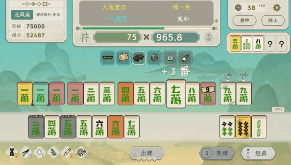 从超过四十种不同的麻将风格中汲取灵感,并制作成了不同的麻将机制。无论你是麻将新手、立直麻将玩家,还是国标麻将玩家,都可以在青天井里找到适合自己中意的牌组。定缺?没问题!宝牌?当然有!花牌?不用说了,我们应有尽有!
