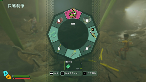 4、利用快速制作面板,用收集到的材料就能打造基础武器和防护装备。