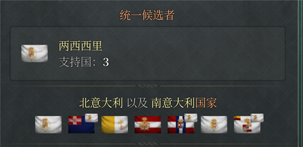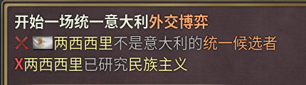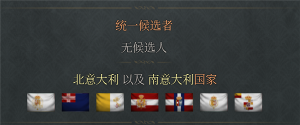 7、候选人为成立国家中外交排名最高一级的所有国家。(德意志文化就是普鲁士和奥地利,因为他们都是列强,而意大利文化开局就只有两西西里,因为意大利只有一个主要政权,其他都是次要政权)