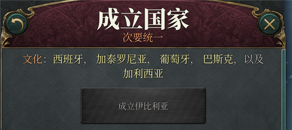 4、可成立国家分为重大统一和次要统一,大多数国家都是次要统一。次要统一只能使用控制省份数量的成立方式,控制所有地域需要附庸或拥有,关税同盟是不算的。