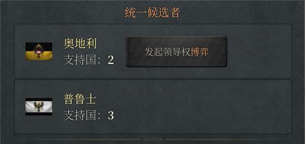 8、如果有多个统一候选者,则可以对其他候选者发动争夺领导权的外交博弈,失败方将被取消领导权。