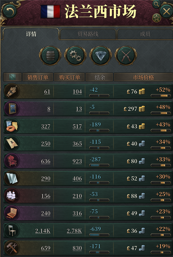 用价格排序看价格,金色的商品就是需要补充的。这种方法很好理解,缺啥造啥肯定不会亏。