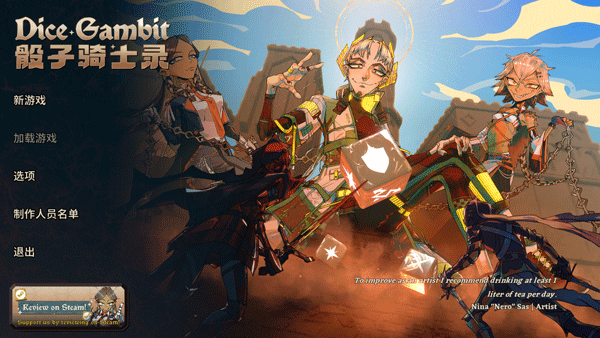 1、解压资源包获得游戏文件,进入骰子骑士录游戏主菜单;
