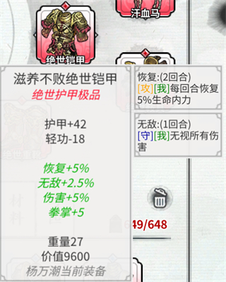 后续天赋点的获取,只要学习武功秘籍就好了,武功秘籍品级越高,学成之后获得的天赋点越多。比如最强的红色武学,学成可获得32点天赋点。