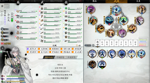 有些人天生就主角,天赋猛,悟性高,干啥都少走弯路。在《龙胤立志传》里,我们只要天赋选的好,自然可以少走弯路!你看峨眉派的白云子,为啥厉害?人家一身橙色天赋,最次的紫色天赋也是武学天才能不猛吗?