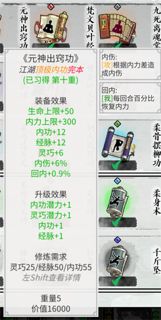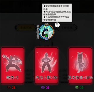正如突破时的备注标注的这样,当你选择修练一门武学,只是为了获得它的升级属性提升,那么就没有必要做太多资源投入进行突破。因为突破效果只有在你装备这门武学、使用这门武学时才有效。