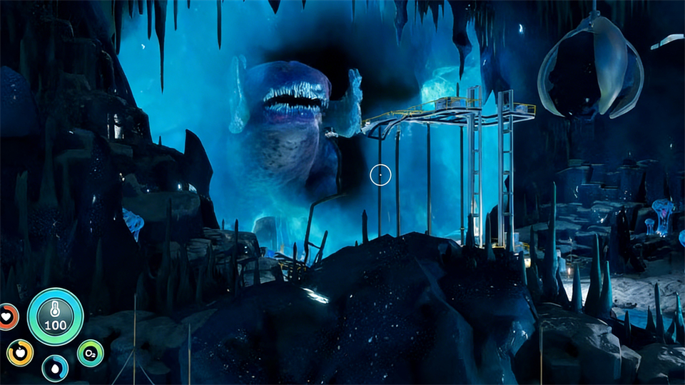 深海迷航冰点之下游戏构建了一套双层生存体系:陆地上需应对持续低于零下20℃的严寒,依靠热能花、保暖套装和热咖啡维持体温;水面之下则回归经典的氧气管理与资源采集,在泛着蓝光的扭曲桥状海域、晶莹剔透的水晶洞穴、活跃的热液喷口间探索12类差异化地形与47种具行为AI的外星生物。你将邂逅温顺的辉光鲸,也需警惕阴魂不散的暗影利维坦,在极端恶劣条件中努力生存!