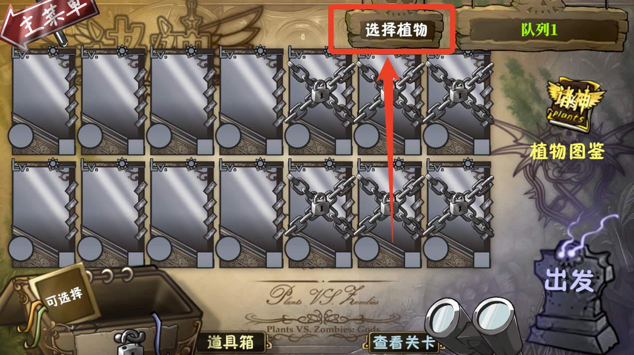 1)点击上方的【选择植物】可以选择你想要出场的植物。