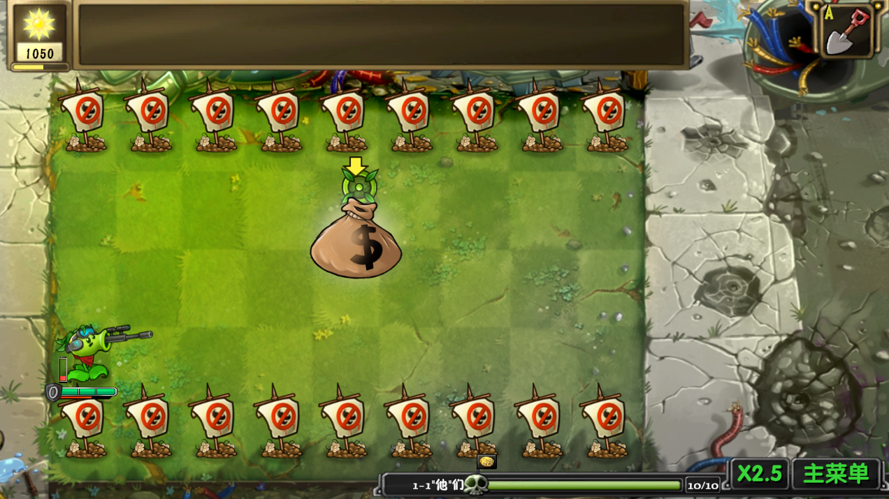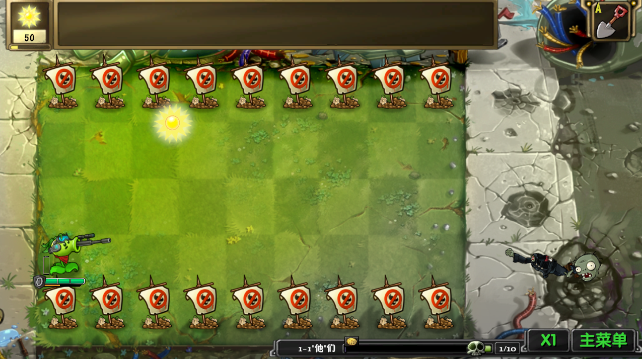 2、点击植物放到草地上,插有禁止旗帜的地方就是不能放植物。每个植物只有一张卡,不能重复使用。放置植物时都会显示攻击范围,尽可能利用。