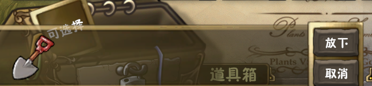 4)道具箱也能选择,不过我们现在只有一把铲子,点击即可。