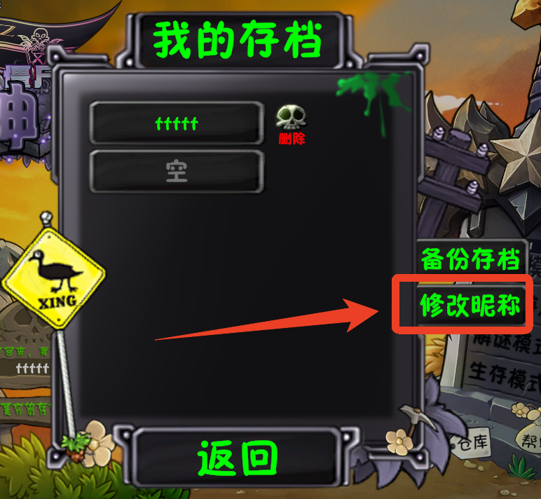 1、在游戏首页左边名字下方的【如果这不是你的存档,请点我!】这个选项。