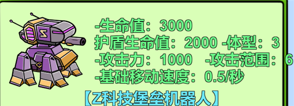 Z科技堡垒机器人行动缓慢,武器可在中距离造成很高的伤害,护盾和装甲都能抵御大量的伤害。攻击造成能量爆炸伤害。