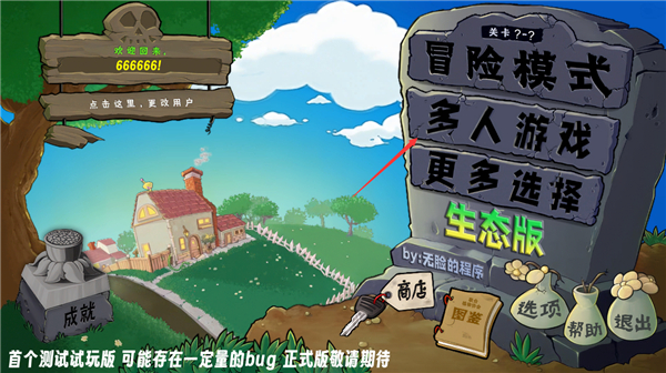 最大的特点就是植物大战僵尸生态版电脑版支持联机玩法,目前支持合作模式任何关卡1-4人一起玩,阳光共享,场上的阳光每个玩家都可以去收集,总数不变。目前还是推出是测试版,后续更新还会上线新植物、僵尸,以及新机制、地图内容!