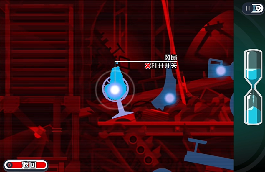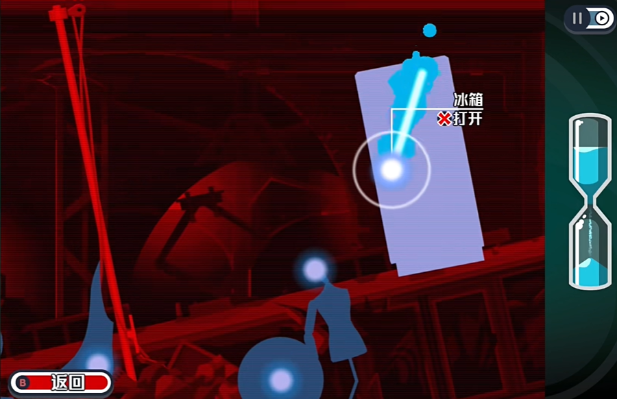 当你倒转时间时,你有四分钟时间阻止受害者死亡。在现实世界,时间流逝正常,但每当你切换到幽灵世界时,计时器都会停止,让你可以慢慢观察周围的物体。每个物品都有简短的功能描述,但如果想测试,就得切回现实世界。