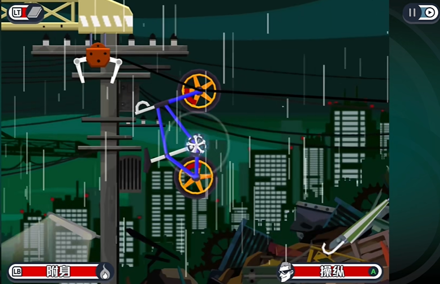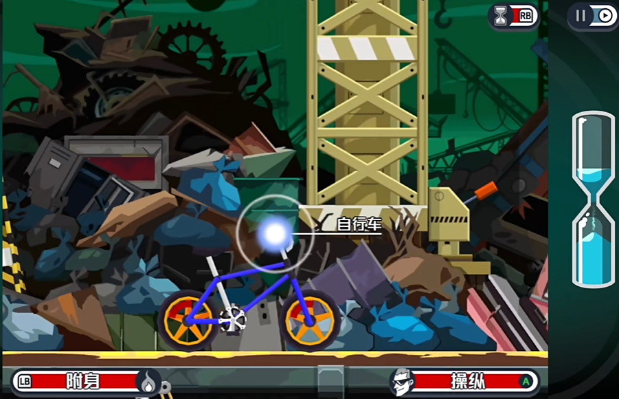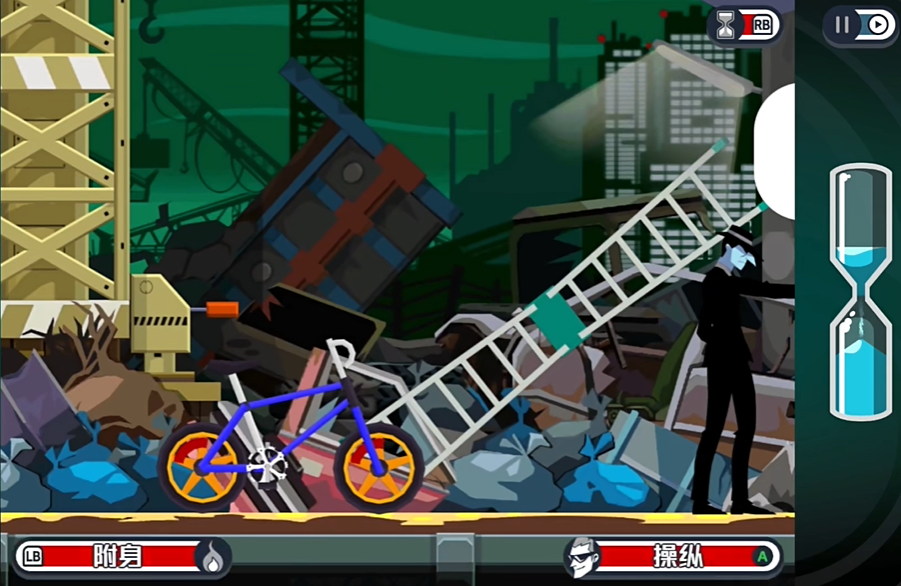 自行车停下后,拉动你上方的操纵杆,然后移动到右侧的梯子。伸出梯子,用它去抓破坏球的爪子。把球放给Jeego,去淘汰他,救那个女孩。