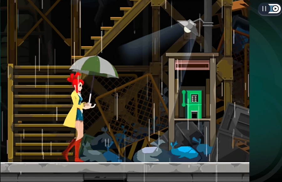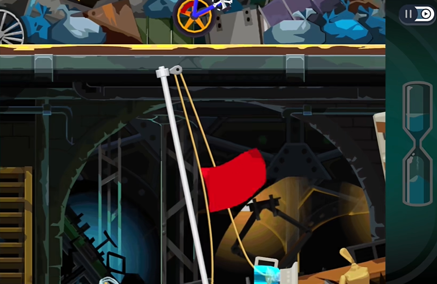 旗子会把绳子撞进搅拌机,搅拌机会把旗子升到Jeego和女孩所在的位置。过场动画结束后,立即进入幽灵世界停止计时器。