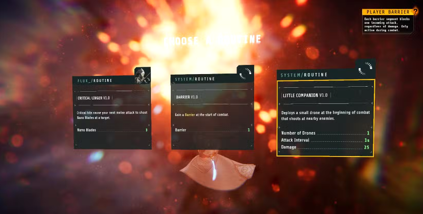 每次战斗结束或开启储存库(Repositories)时,你都有机会获得“例程”(Routines)。例程可以提升你的整体属性或特定角色的能力,改变他们的协议技能(Protocols)、增加独特加成等。