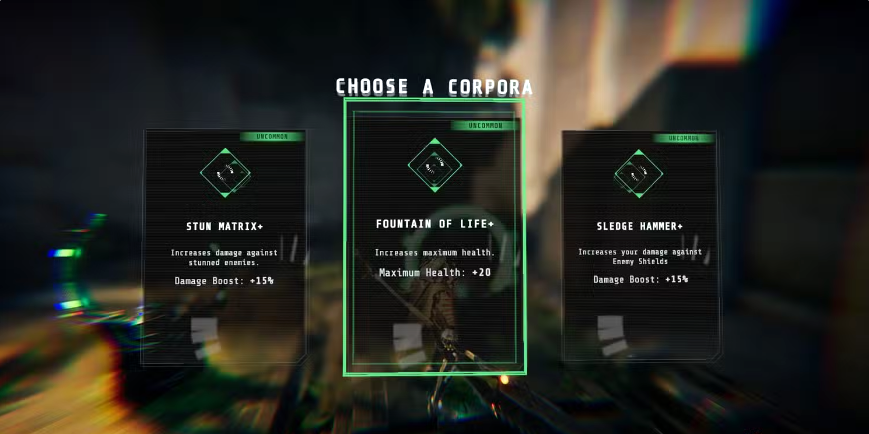 例如,Corpora Fountain of Life(生命之泉) 会提升你的总生命值,而 Stun Matrix(眩晕矩阵) 则会增强你对眩晕敌人的伤害。
