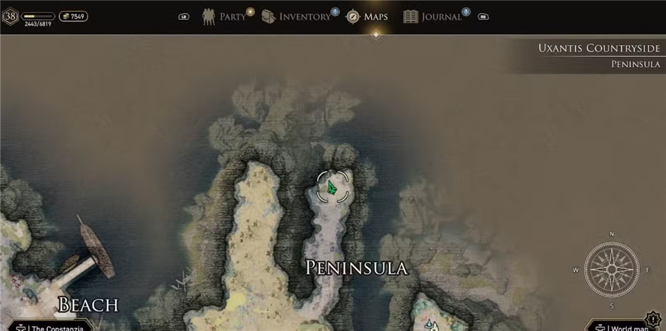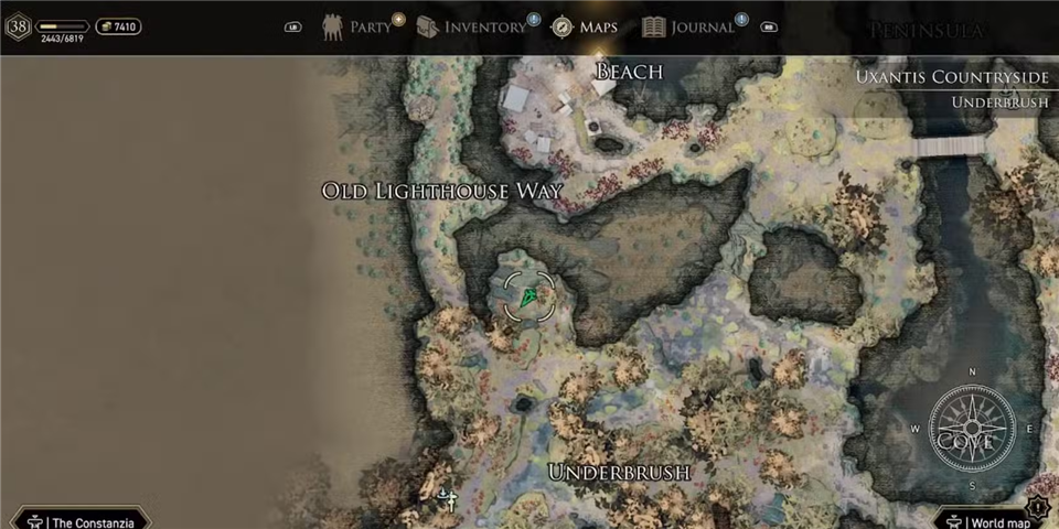 第四个谜语说你必须去“活泼的鲷鱼游动的海岸”。就在这片荒野的北边......靠近岸边一块断裂的岩石......”前往半岛,那是一片沙地,靠近你在父子任务中遇到航海者之子的地方。