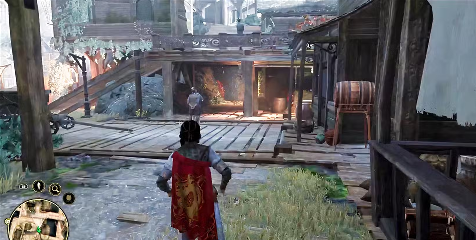 第二个谜语说要“看外来贵族头部附近。在一个海盗巢穴下面,隐秘的洞穴......”前往外国人区,经过水车,穿过小桥到达外国人之路。
