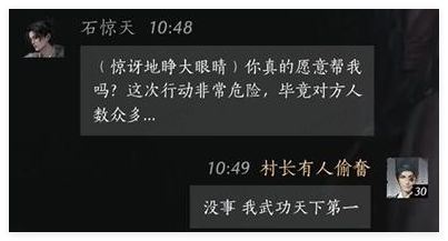 此时玩家回应“没事我武功天下第一”(或其他表达信心的台词),进一步加深信任。