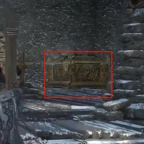 面对神龛向左边走,岔路口继续走左边,不要穿过木桥,直接从右边跳下去,沿着木板一路前进,小心机关,然后贴着右边墙壁前进,然后从左边的墙壁缺口跳到外面,接着往右走,沿着斜坡一路上去,到尽头从右前方缺口下去发现宝箱,打开即可获取。