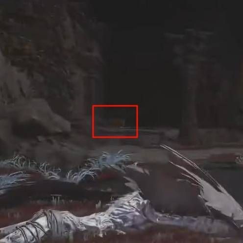 面对神龛往后走,出门后爬上左后方梯子(需要先解锁),一路贴近右边走,然后往左前方,来到岔路口往左走,一路向前,进入山洞,就能看到目标宝箱,需要向左走,一路往上,到尽头跳下平台,在左手即可看到宝箱,打开即可获取。