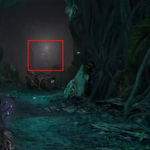 面对神龛,转身向后走,穿过大门,一路向下,看到怪物转向右,走过隐形木桥,往左走,穿过二层的木板平台,进入右侧废弃建筑物内,即可看到宝箱,打开即可获取。