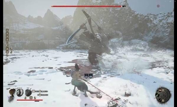 这招是固定方向攻击,也就是起手后确定了方向就不会变更,所以直接绕后砍就行,砍到没体力了还能砍,但是招式结束之前要及时后撤回体力。