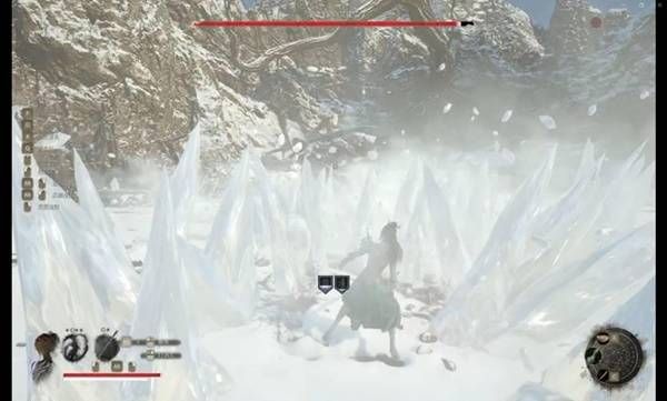 艾能奇掀起三道冰刺。一般左/右闪避就行,因为中间那道是正对无常的,而每道冰刺之间的距离足够宽。