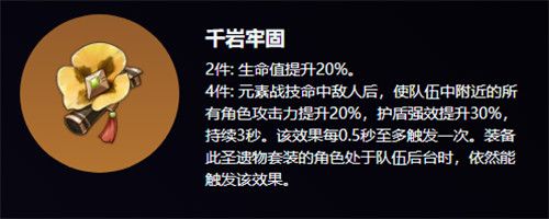 2、四件套效果:释放元素战技提升全队攻击力并提升护盾值。