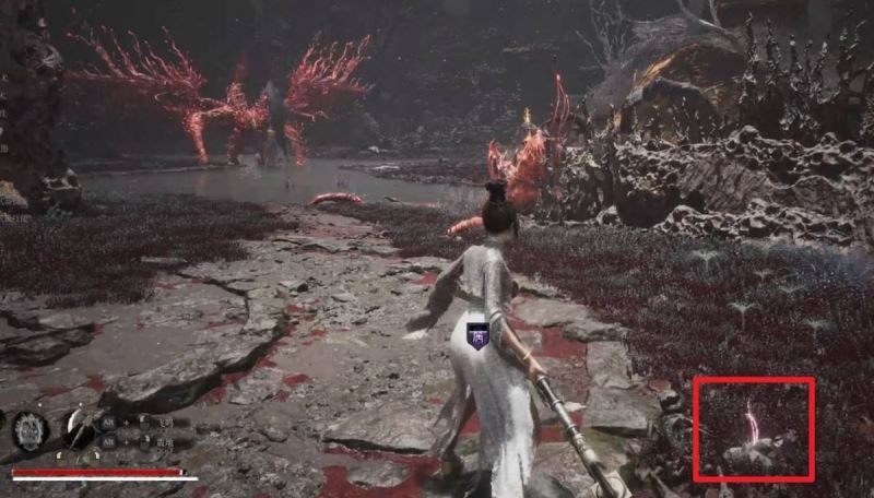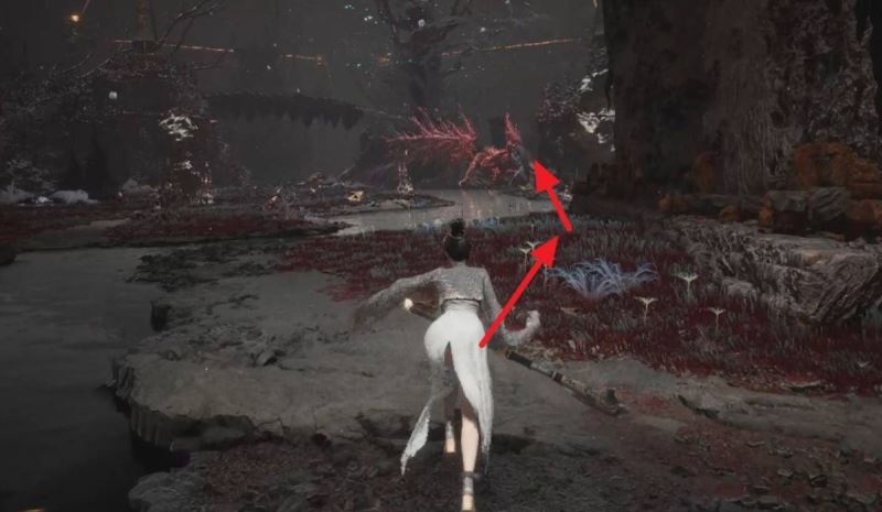 过来后会看到交战的红鸟怪与黑翅怪,绕过他们抵达后方陆地。