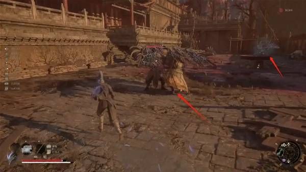 然后从后面的门出去,往右边走。门里面有两伙人互殴,士兵跟鸟人,我们要做的就是螳螂捕蝉黄雀在后。
