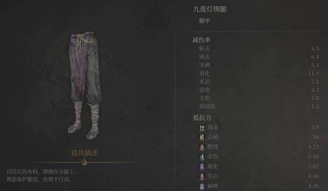 九莲灯绑腿:以结实的布料,绑缠在小腿上。既能保护腿部,也便于行动。