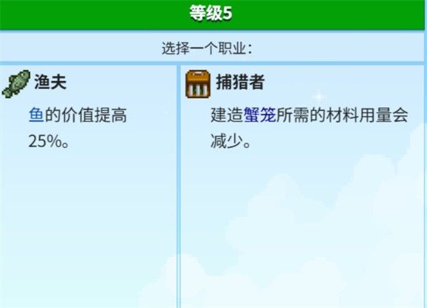 钓鱼5级:优先选择【捕猎者】,提高所有蟹笼产出的基本价值。