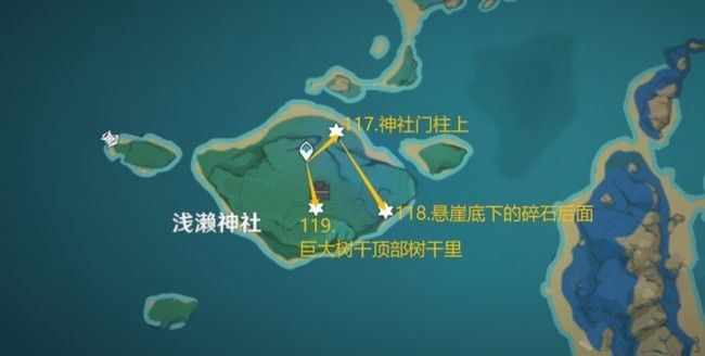 2:在小岛山坡上树枝旁边从神像那到沙滩上开启锚点坐船过来从树上跳过去可以够到