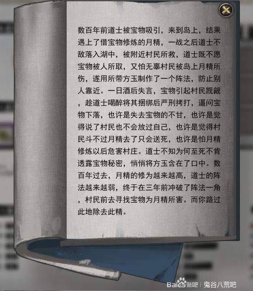 选择第三个选项,村民凑了8000灵石给主角,央求他去岛上一探究竟,并且此时主角还可以选择“有古怪”“查看道士的坟墓”,得到一块可以卖2000灵石的道士方玉,然后再上岛进入下一阶段。