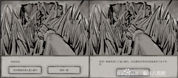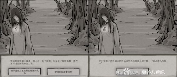 接着主角回到道士坟前,可以选择单纯祭拜或者把月精内丹放入坟中,我出小册子的路线是选择了放入内丹(没必要贪这点东西),然后又遇到了一个带着和道士同款方玉的女子,很有良心的选择了“把村民给的8000灵石和方玉一起给她”,最后的收获就是小册子和一个buff。