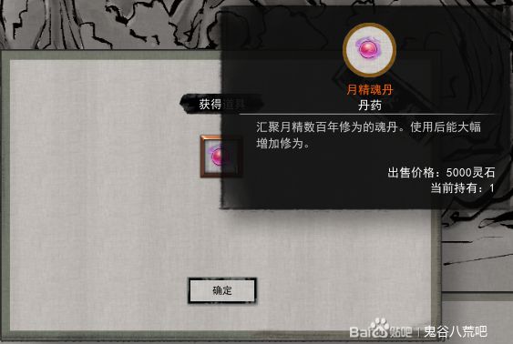 然后是殴打一只月精(也就是蟾蜍),没什么难度,注意走位可以完全无伤。殴打完毕得到月精内丹,效果是大幅增加修为,具体多少尚未测试,起码能填满整个结晶后期。