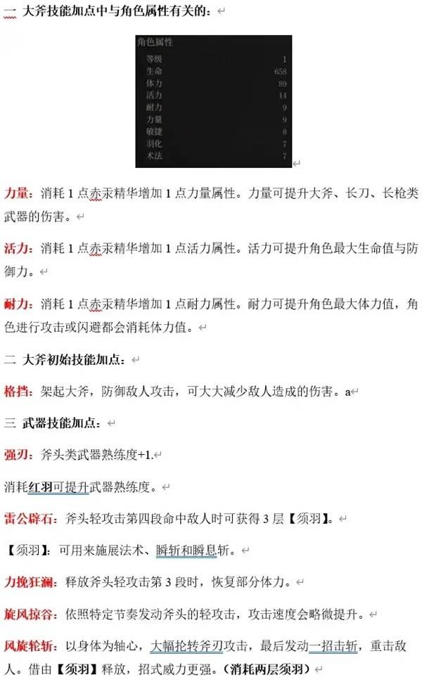 大斧技能加点中与角色属性有关的