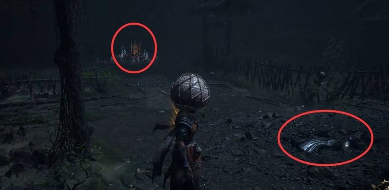 2、从神龛处回头,就能看到安文思躺在之前老船夫挖的那个坑里面祈祷。