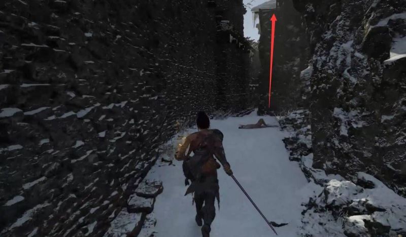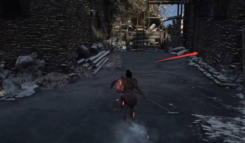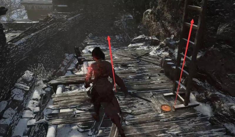1、从【云顶内城】神龛出发,回头穿过房子,到狭窄的小道直走上梯子。