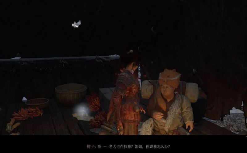 5、出门之后右拐从梯子爬上去,胖子在集市上的帐篷里。与胖子去找老大沈静安,获得【出山帮狐皮帽】