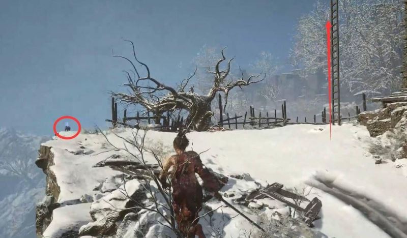 2、从左边上去来到悬崖就能看见通向塔顶的梯子了。对左边发光点香炉使用动作【水袖舞】可以获得技能点。