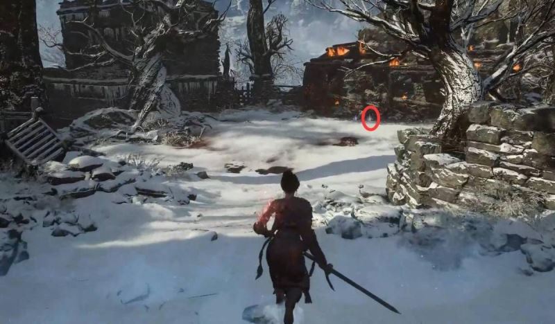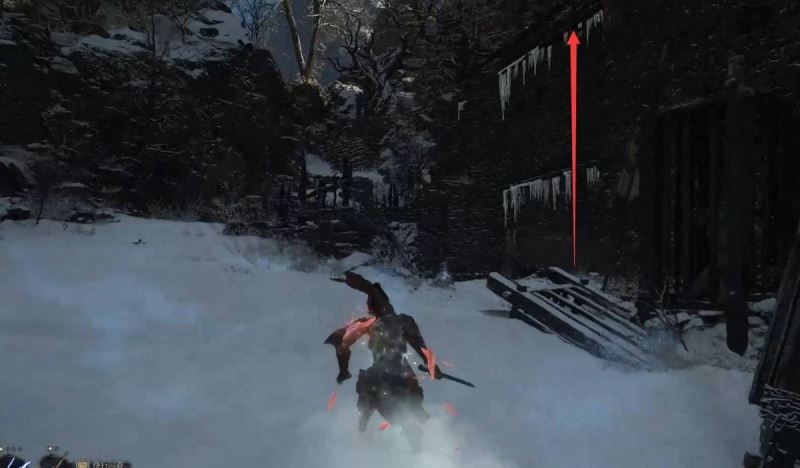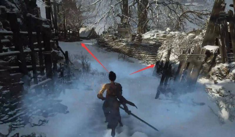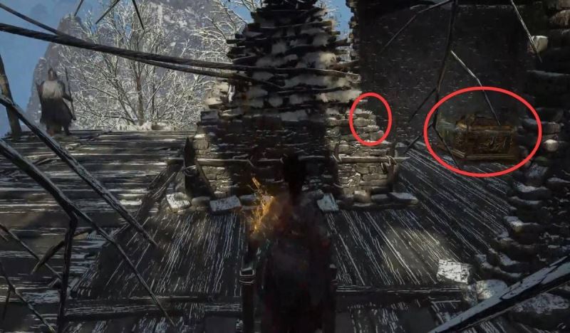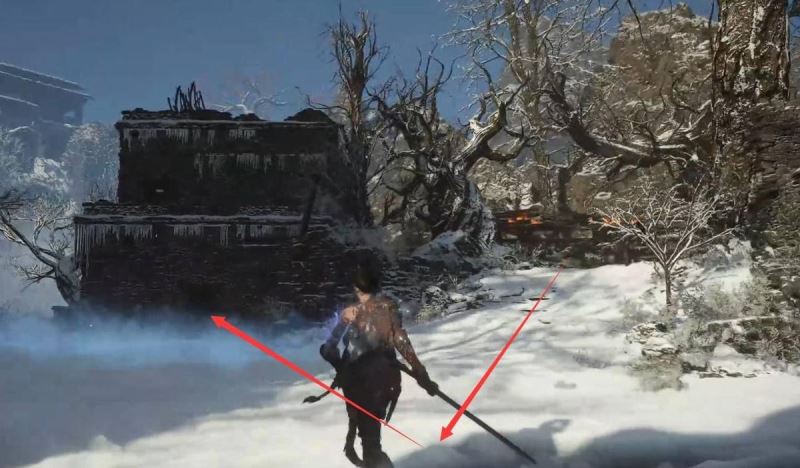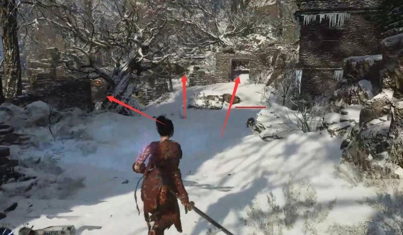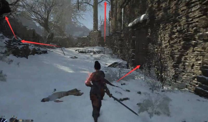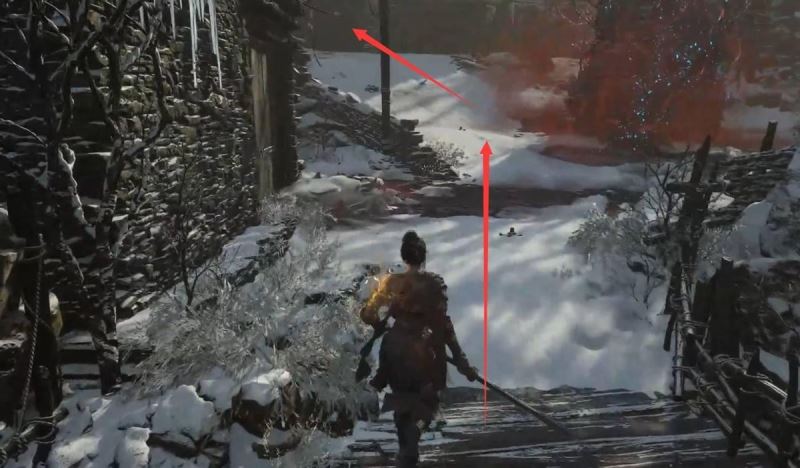 1、从【云顶外城】神龛出发,回头从对面的木门框下过去右转,注意绕开旁边的红色刷怪塔,靠近会刷怪。