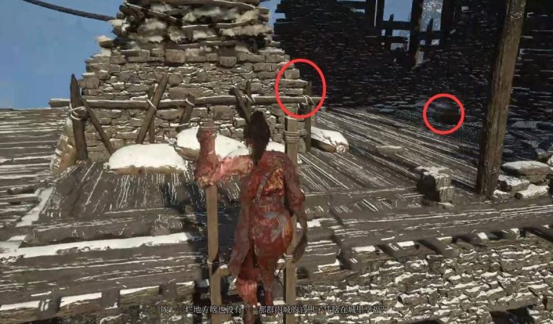 2、右手边门进去后有个精英怪,击败可以获得【黯淡红羽】,前面的梯子爬上去就是第一个烽火台,左手边进去有个梯子,上去是通往第二个烽火台的路。
