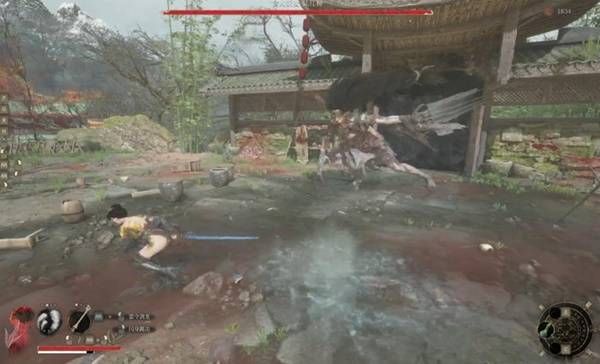 胖子身旁有个木板,过去后上梯子,屋檐过去到院子里,击杀该精英怪。