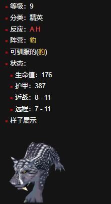 2、稀有豹子指的是等级9级的【暮色巡游者】;