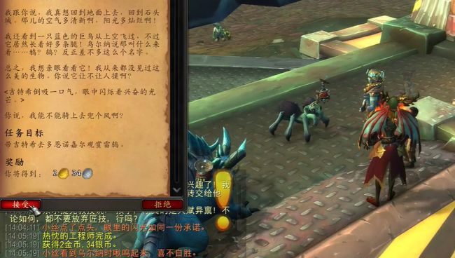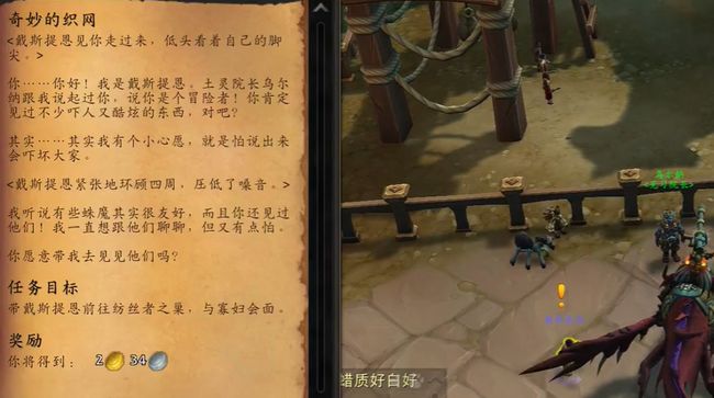 1、完成小狗头人大梦想后,和戴斯提恩对话接受任务【奇妙的织网】。