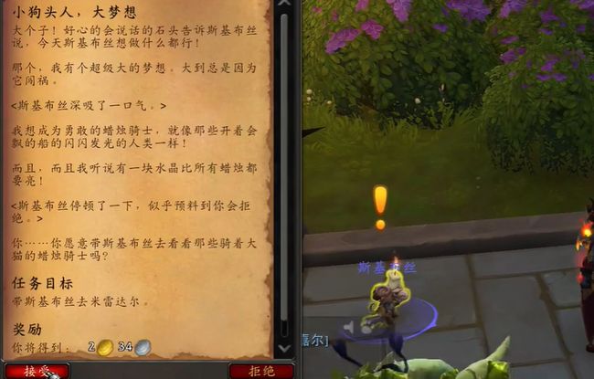 1、我们和斯基布丝对话接受任务【小狗头人,大梦想】。